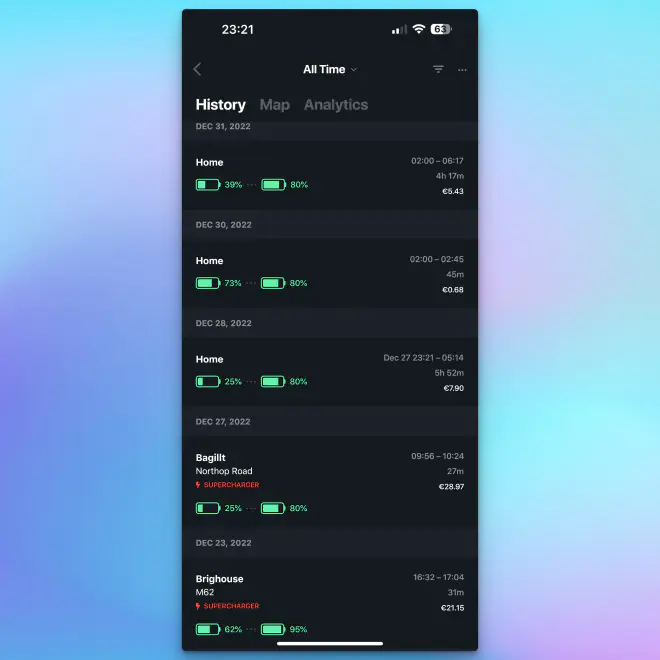 This is where a cool app/platform called Tessie comes in, it is available as either a mobile app but also as a web platform and when you log into it will collect the data from the API above and use it to do a few things: